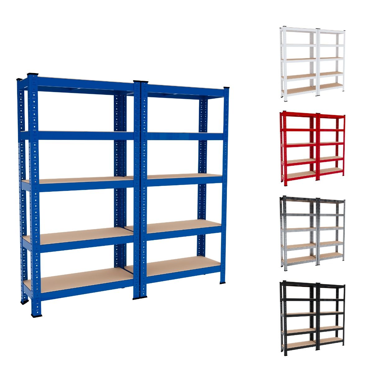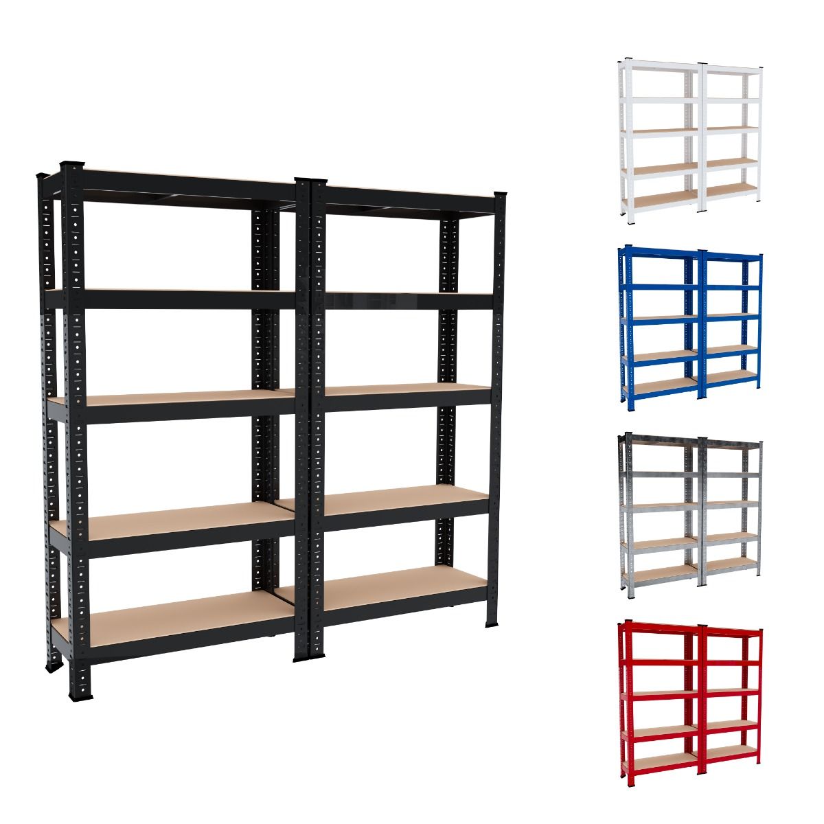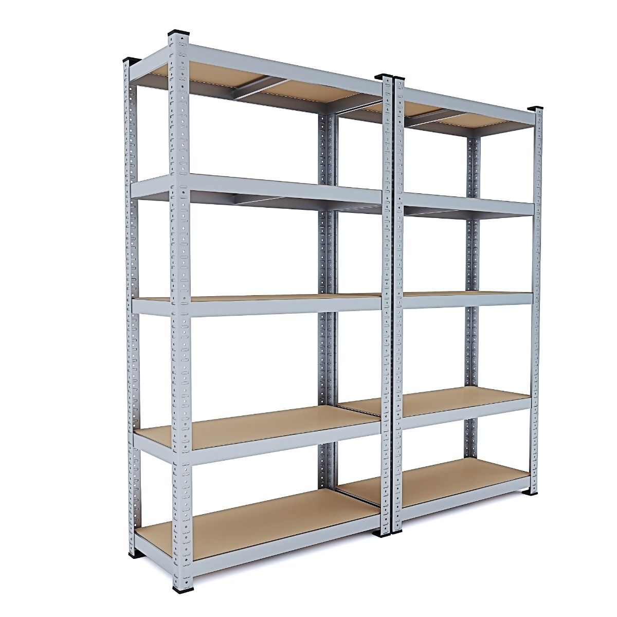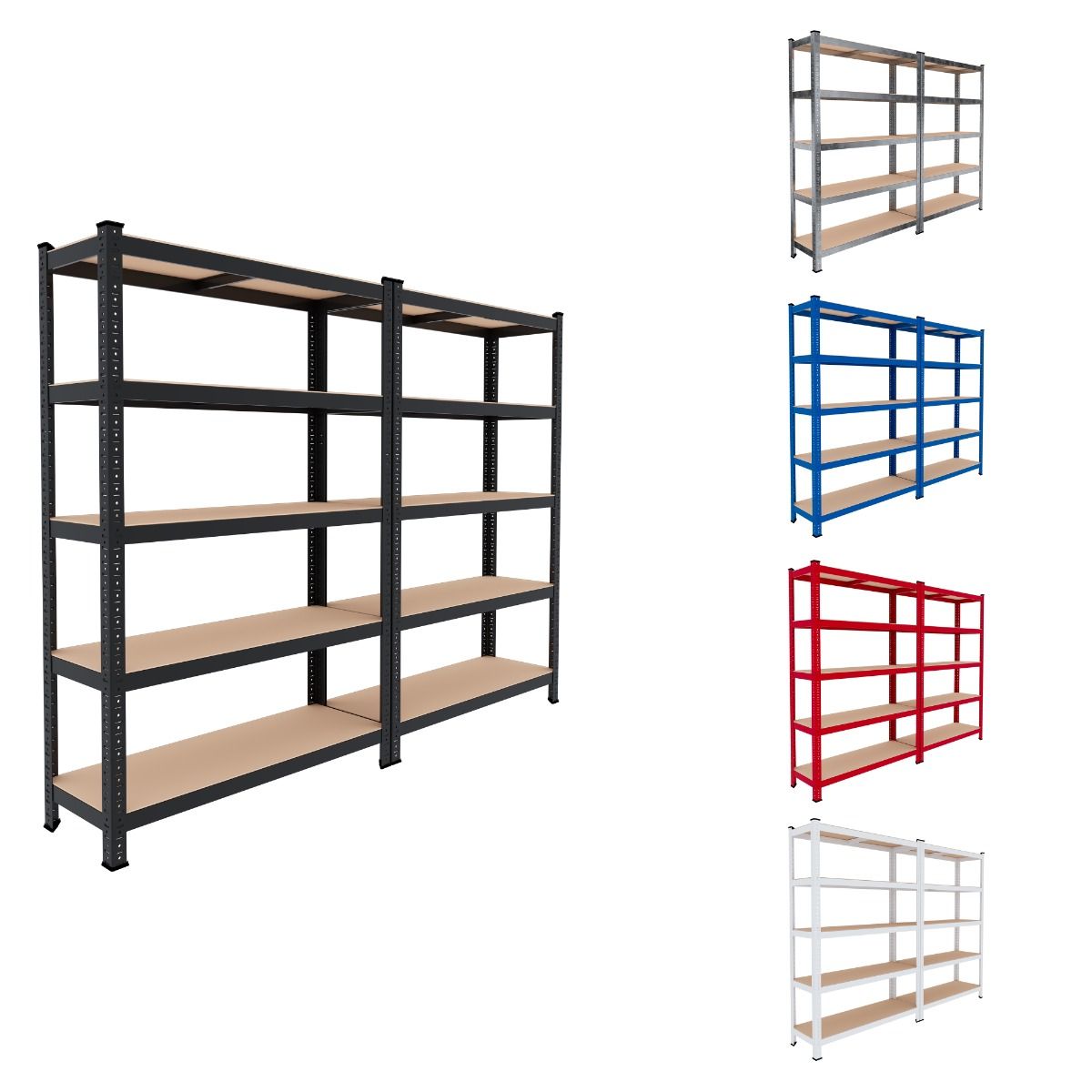 2 Scaffali In Metallo E MDF Scaffale Ad Alta Portata Fino a 875 kg Con 5 Ripiani Regolabili Ideale Per Garage Officina Cantina Capannone Magazzino Design Modulare