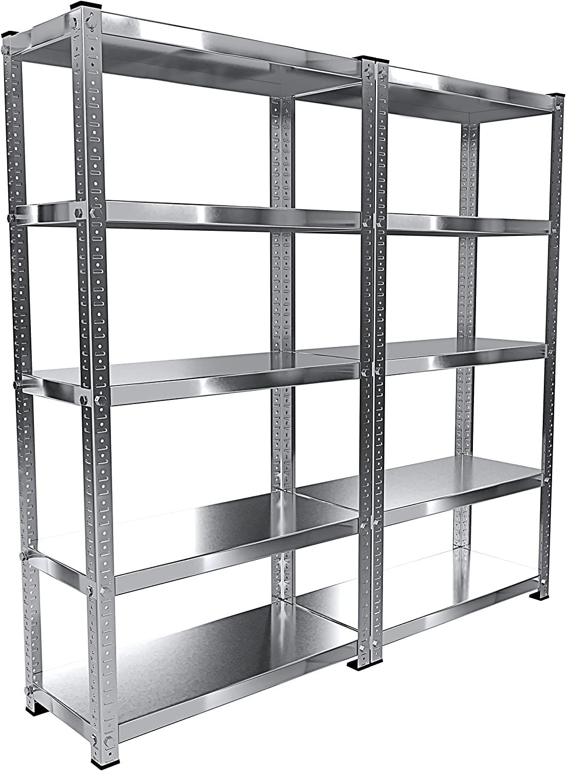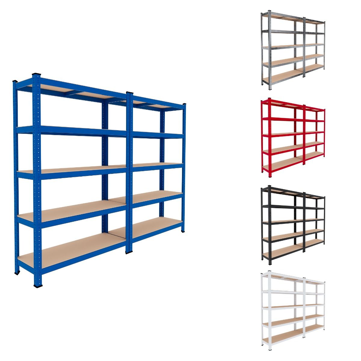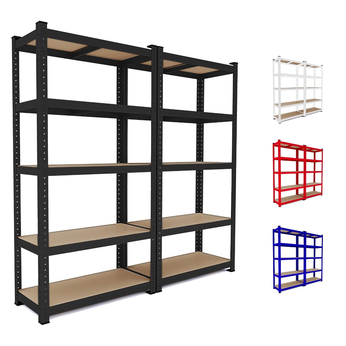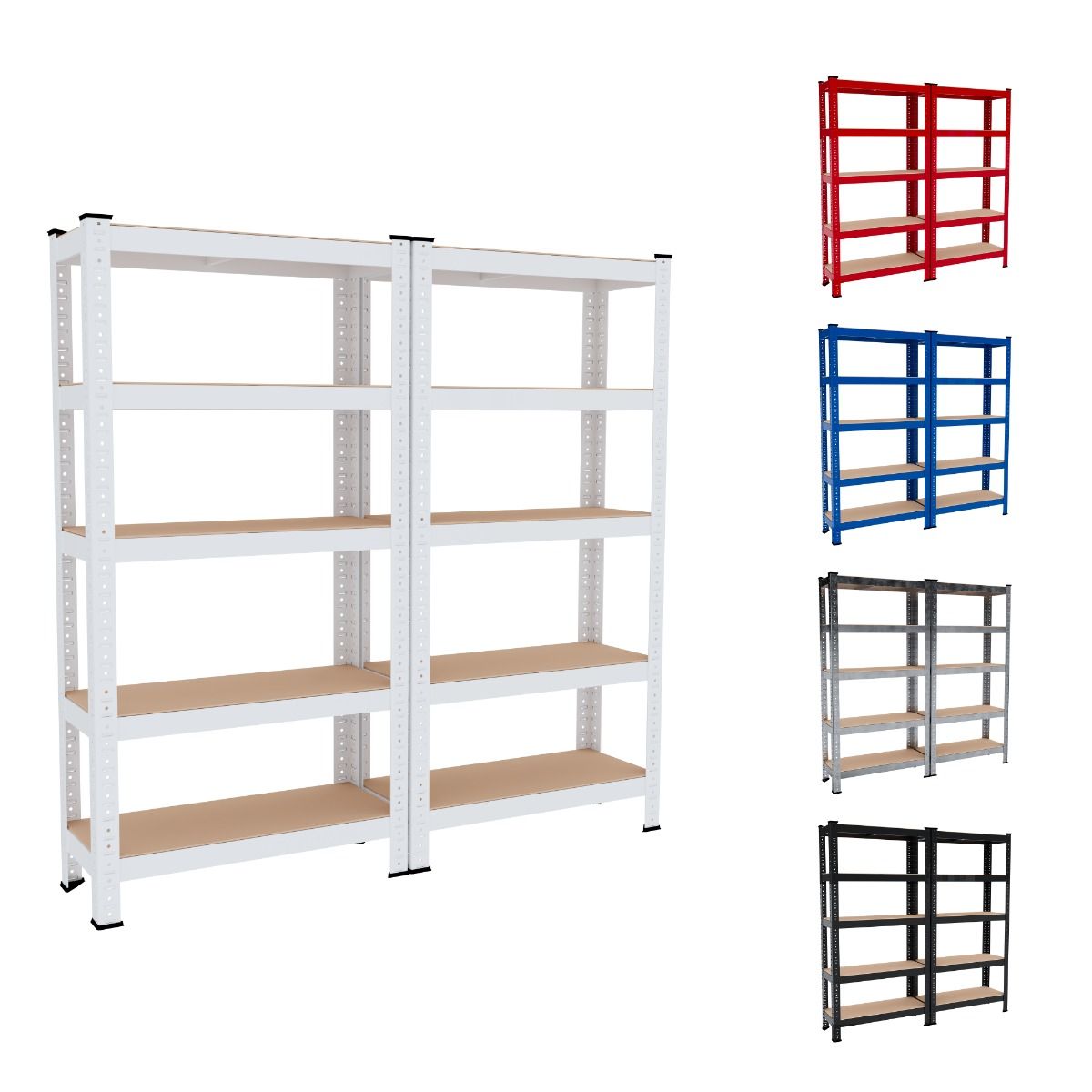 2 Scaffali In Metallo E MDF Scaffale Ad Alta Portata Fino a 875 kg Con 5 Ripiani Regolabili Ideale Per Garage Officina Cantina Capannone Magazzino Design Modulare