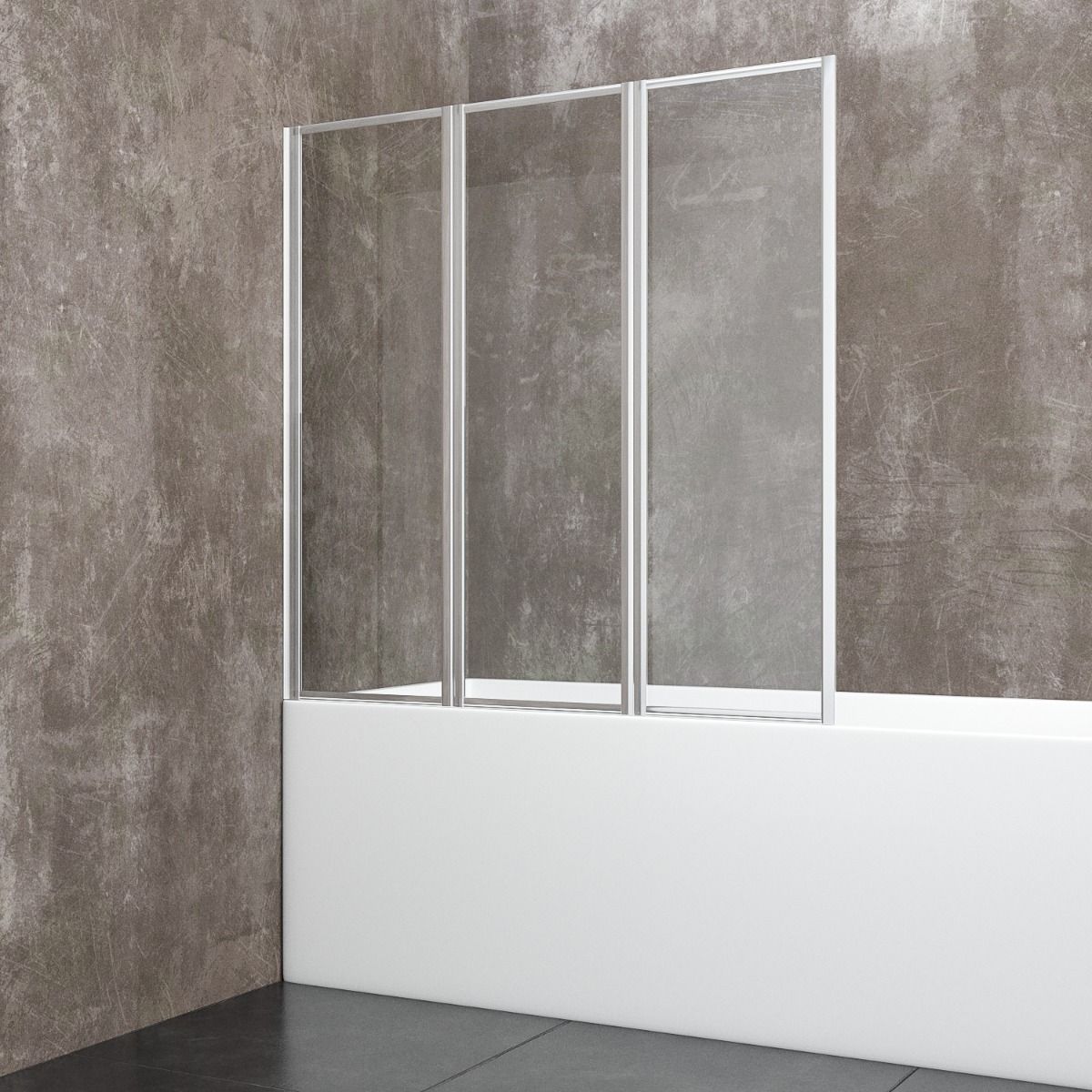 Parete Da Vasca 3 Ante Pieghevoli Box Doccia Sopravasca In Cristallo Temperato Trasparente Profili In Alluminio Anodizzato