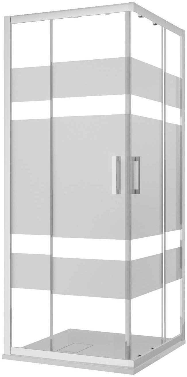 Box Doccia Quadrato Cabina Bagno Con Porte Scorrevoli Ante In Cristallo Temperato Serigrafato Struttura Alluminio Anodizzato Maniglie in Acciaio Cromato