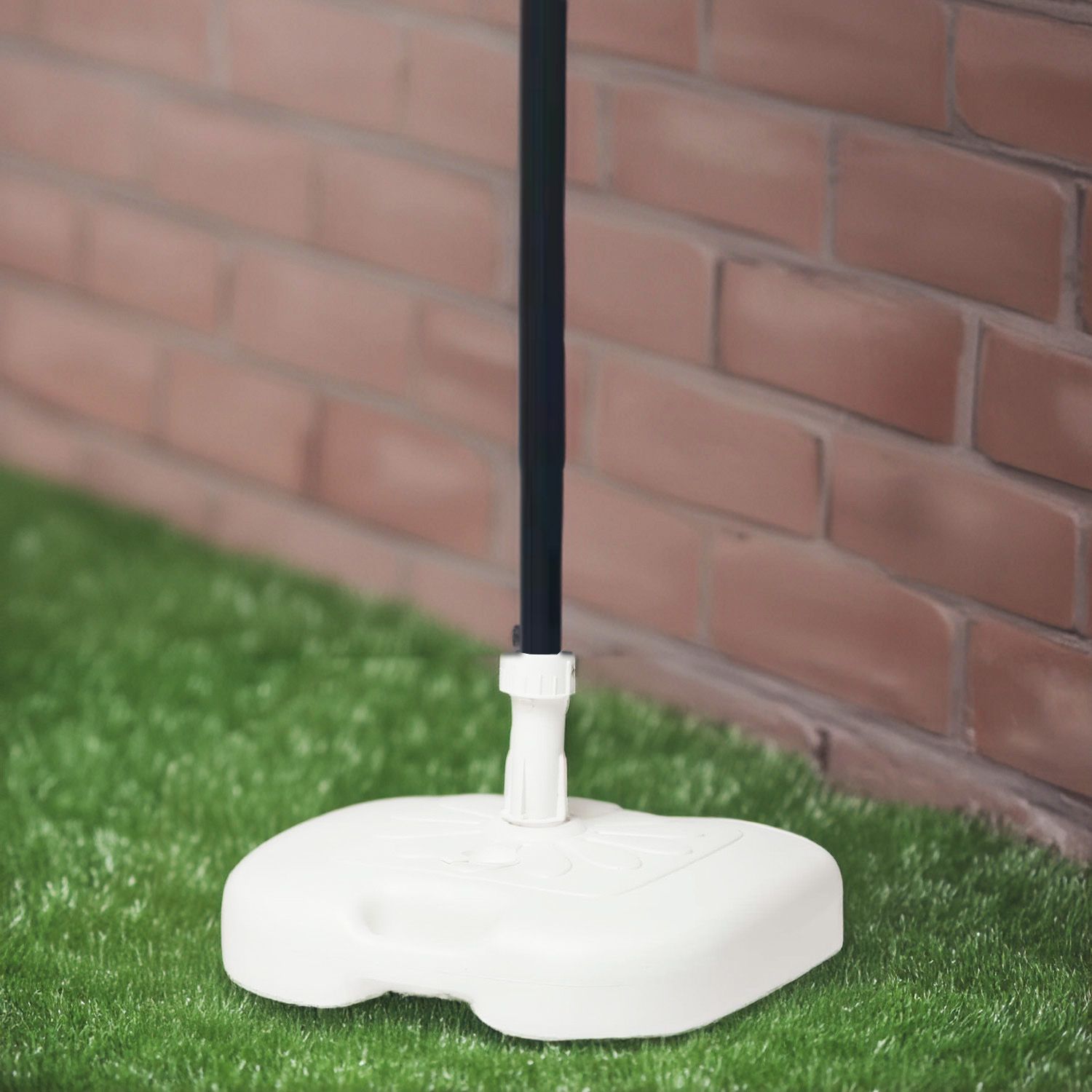 Base Basamento In Dura Plastica Resistente Per Ombrellone Centrale Da Giardino Riempibile Con 20 Kg Di Acqua Sabbia Per Terrazzo Balcone Base Quadrata Angoli Arrotondati e Adattatore Palo (Bianco)